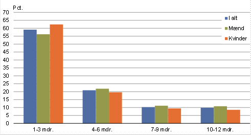 Tabel 1. Antal måneder som registrerede arbejdssøgende efter køn
