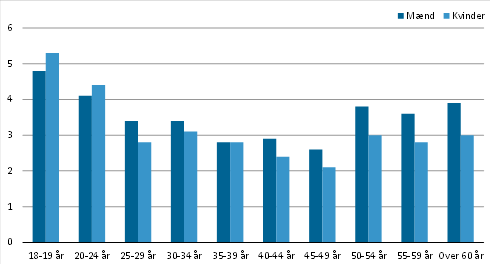 Figur 2. Ledighedsprocent fordelt på køn