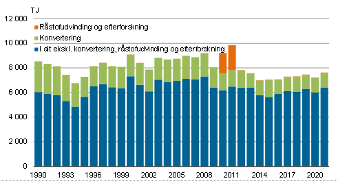 Siden 1990 er det faktiske energiforbrug skiftevis steget og faldet afhængigt af den økonomiske aktivitet i samfundet, kolde og varme år, varierende aktivitet på råstofområdet samt ikke mindst produktionen af elektricitet fra vandkraft, der har fortrængt store mængder gasolie i konverteringssektoren.