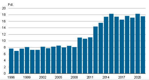 Frem til 2021 har selvforsyningsgraden svinget mellem 16,5 pct. og 17,7 pct. I 2021 var selvforsyningsgraden 17,5 pct.