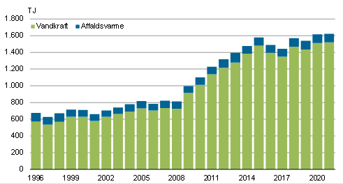 Forbruget af vedvarende energi m.m. er vokset stærkt siden starten af 1990’erne. I 2021 var forbruget af vedvarende energi på 1.623 TJ, hvilket er 0,4 pct. mindre end året før. I 1996 var det samlede forbrug af vedvarende energi på 675 TJ.