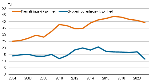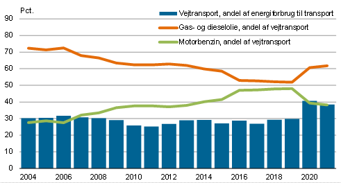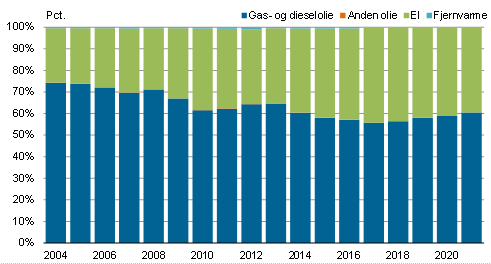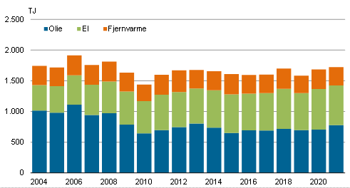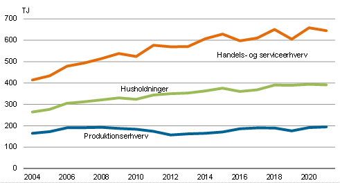 I 2021 faldt elforbruget med 2,0 pct., mens forbruget af fjernvarme faldt 7,1 pct. i forhold til året før. Olieforbruget steg 10,2 pct. i 2021. I forhold til 2004 er olieforbruget i handels- og serviceerhverv faldet 23,3 pct.