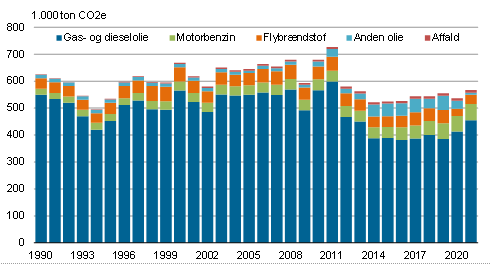 I 2021 udgjorde den faktiske emission af drivhusgasser fra energiforbrug 566.518 ton CO2-ækvivalent. Det er 5,6 pct. mere end i 2020. I forhold til 1990 er den faktiske emission af drivhusgasser fra energiforbrug faldet 9,4 pct. Drivhusgassen kuldioxid (CO2) udgjorde 562.527 ton svarende til 99,3 pct. af den samlede emission fra energiforbruget i 2021.