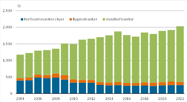 Noter: 1) Forbrug af vandkraftbaseret el til produktion af fjernvarme. 2) Bestemmes som forskellen mellem produktion og endeligt forbrug.