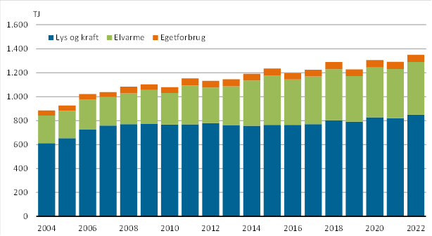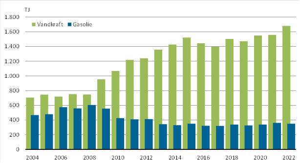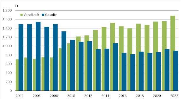 I 2022 blev 350 TJ svarende til 17,3 pct. af den samlede elproduktion produceret ved forbrænding af gasolie. Vandkraft tegnede sig for 82,7 pct. af elproduktionen. Den vandkraftbaserede elproduktion var på 1.680 TJ i 2022. Det er 7,9 pct. mere end i 2021.