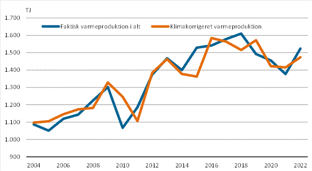 Figur 12. Faktisk og klimakorrigeret varmeproduktion