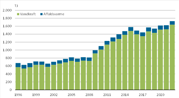 Forbruget af vedvarende energi m.m. er vokset stærkt siden starten af 1990’erne. I 2022 var forbruget af vedvarende energi på 1.727 TJ, hvilket er 6,4 pct. mere end året før. I 1996 var det samlede forbrug af vedvarende energi på 675 TJ.