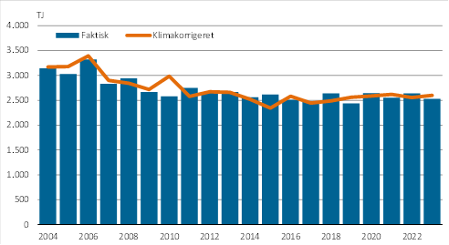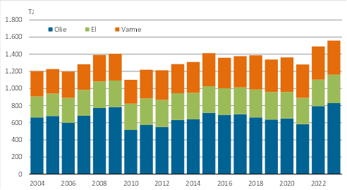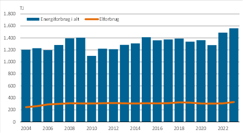 I 2023 steg elforbruget med 7,7 pct., mens forbruget af varme steg 3,4 pct. i forhold til året før. Olieforbruget steg 4,2 pct. i 2023.