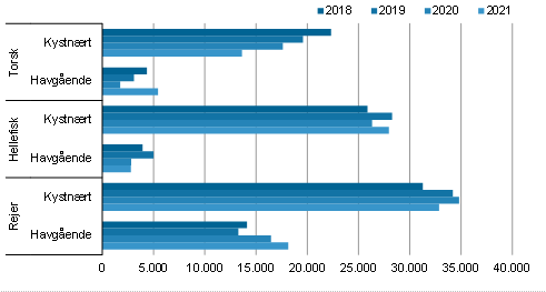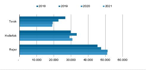 I de første 11 måneder af 2021 faldt indhandling af rejer og torsk i mindre omfang i forhold til samme periode i 2020. Indhandling af hellefisk steg i for samme periode. Dette kan du eksempelvis se ved seneste opdatering i statistikbanken, som er udkommet i dag.