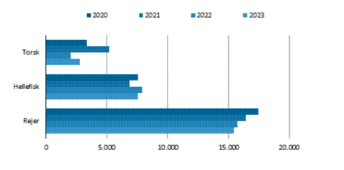I de første 4 måneder i 2023 faldt indhandling af rejer og hellefisk i mindre omfang i forhold til samme periode i 2022. Indhandling af torsk steg for samme periode. Dette kan du eksempelvis se ved seneste opdatering i statistikbanken, som er udkommet i dag.