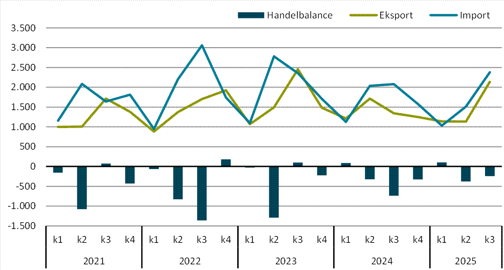 Oversigt 1. Handelsbalancen i 1-3. kvartal 2021-2025