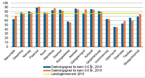 Ved beregning af dækningsgraden, er der medtaget alle børn, som er indskrevet i førskole dagtilbud 0-5 årige, samt de enkelte 6 årige der er indskrevet. Børnene i befolkningen er opgjort for de 0-5 årig, inkluderet de 6 årige som er indskrevet.