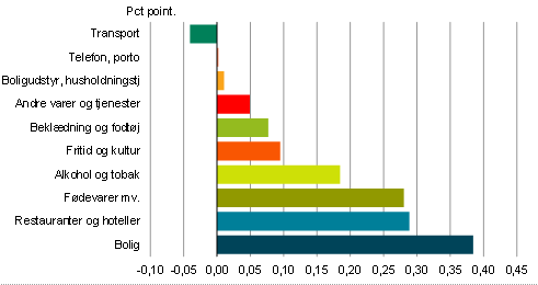 Anm: Vækstbidraget viser hvor meget undergrupperne bidrager til ændringen i forbrugerprisindekset. Dette afhænger af både prisændring og vægtning.