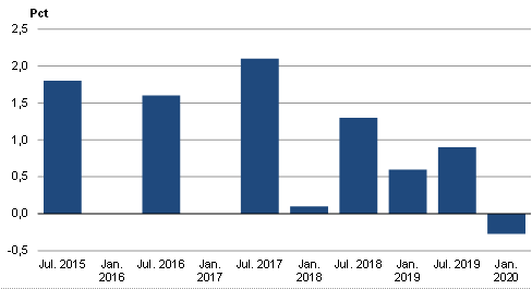 Figur 1. Byggeomkostningsindekset halvårlige ændringer, juli 2015 – januar 2020