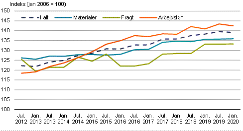 Figur 2. Byggeomkostningsindekset (jan 2006=100), jul. 2012 – jan. 2020