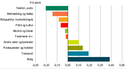 Anm: Vækstbidraget viser hvor meget undergrupperne bidrager til ændringen i forbrugerprisindekset. Dette afhænger af både prisændring og vægtning.