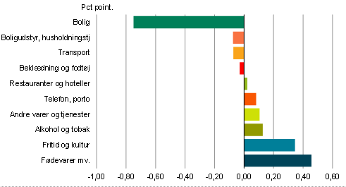 Anm: Vækstbidraget viser hvor meget undergrupperne bidrager til ændringen i forbrugerprisindekset. Dette afhænger af både prisændring og vægtning.