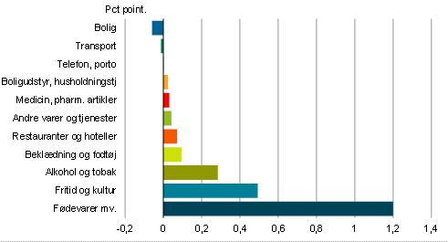 Anm: Vækstbidraget viser hvor meget undergrupperne bidrager til ændringen i forbrugerprisindekset. Dette afhænger af både prisændring og vægtning.