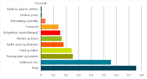 Den største positive ændring til forbrugerprisindekset kom fra varegruppen Bolig.