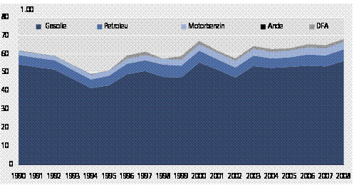 Som det fremgår af Figur 1 stammer den overvejende del af energiforbruget fra importeret gasolie, petroleum og benzin (fossile brændsler). Gasolie er det mest anvendte brændsel og bruges til produktion af el og varme, til opvarmning i husholdninger, institutioner og erhverv samt i industrien, til fiske- og fritidsfartøjer og til landtransport.