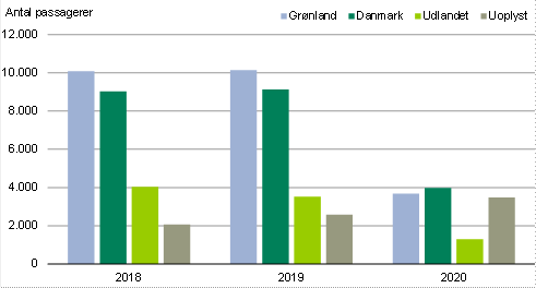 Tredje opgørelse over flypassagerer efter de nationale og internationale COVID-19 rejseforbud, viste et fald i antallet af passagerer med rutefly fra de seks udenrigslufthavne i Grønland på 53,6 pct.. Hvilket var et fald på 13.490 passagerer i forhold til året før.