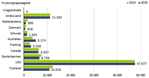 Figur 2. Nationalitet på krydstogtpassagerer 2024-2025