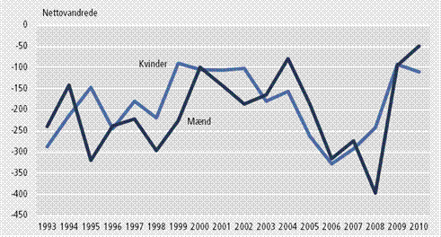 Figur 7. Nettoindvandringer 1993-2010 fordelt efter køn