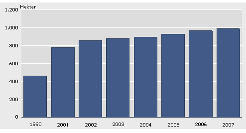Det samlede landbrugsareal øges vedvarende, jævnfør Figur 1 og Tabel 3.