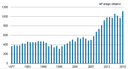 there now live 1,112 foreign citizens in the country. From the table in our StatBank it can be found that especially more citizens from