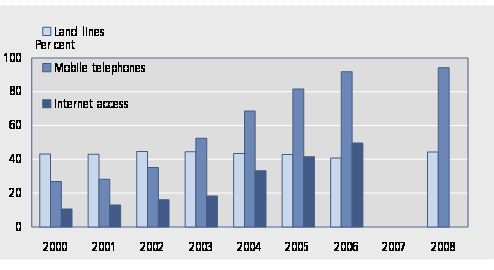 In 2006, 92 per cent of the population owned a mobile telephone. Five years