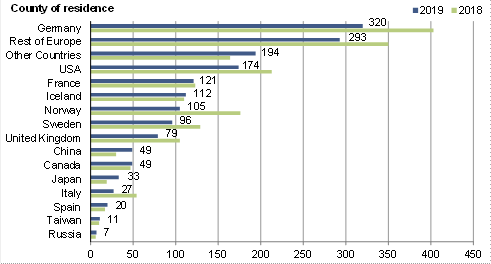 distribution by country of residence.