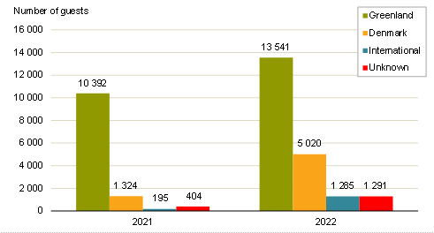 Statistics Greenland receive reports from. The number of overnight guests saw