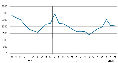 2020-mi marsip qaammataani suliffissarsiortutut nalunaarsimasut katillugit 2.116-iusimapput. Tamanna ukiup siuliani qaammammut pineqartumut naleqqiullugu suliffissarsiortunik 96-inik ikileriarneruvoq.