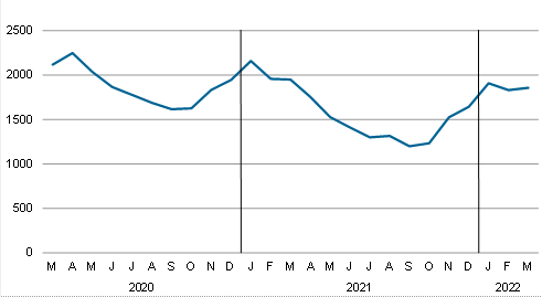 2022-mi marsimi suliffissarsiortutut nalunaarsukkat 1.857-inik amerlassuseqarput. Ukiup siuliani nalunaarsukkanut sanilliullugit suliffissarsiorlutik nalunaarsimasut 93-inik ikinnerupput.
