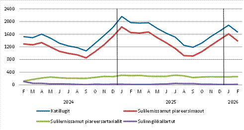 2026-mi februaarimi suliffissarsiortutut nalunaarsukkat 1.670-inik amerlassuseqarput. Ukiup siuliani nalunaarsukkanut sanilliullugit suliffissarsiorlutik nalunaarsimasut 295-inik ikinnerupput.