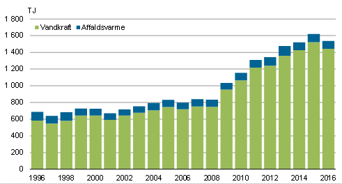 I 2016 udgjorde den primære energiproduktion 1.537 TJ. Det er 5,1 pct. mindre end i 2015, hvor produktionen var 1.620 TJ.