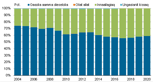 2020-mi innaallagiamik atuineq 658 TJ-uvoq, 2019-imut sanilliullugu 8,8 pct.-imik qaffasinnerulluni. 2004-mut sanilliullugu innaallagiamik atuineq 59,0 pct.-imik annertusisimavoq. Innaallagiaq atorlugu kiassarneq innaallagiamik atuinermut ilaavoq.