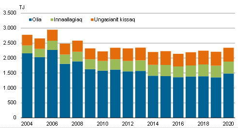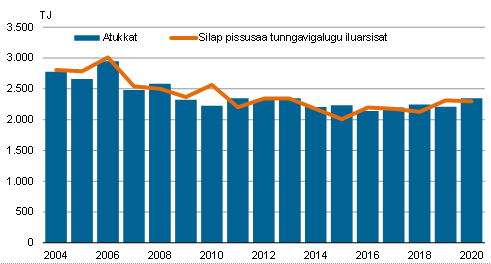 2020-mi angerlarsimaffiit silap pissusaa tunngavigalugu iluarsiinermi atuinerat 2.298 TJ-usimavoq, ukiup siulianut sanilliullugu 0,7 pct.-imik appasinnerusimalluni.