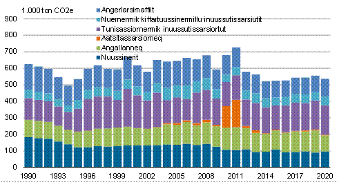 2020-mi nukissiuutinit atukkanit drivhusgassinik silaannarmi mingutsitsineq 536.716 ton CO2-ækvivalentiuvoq (sanilliussinerup inernera).