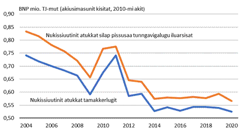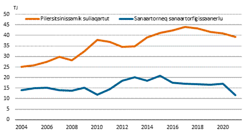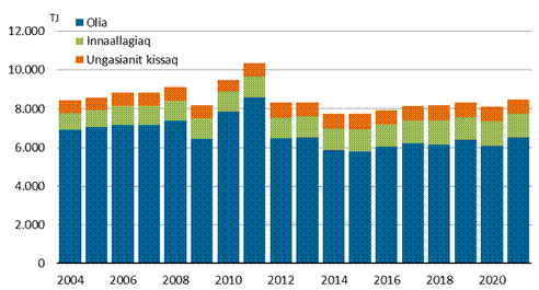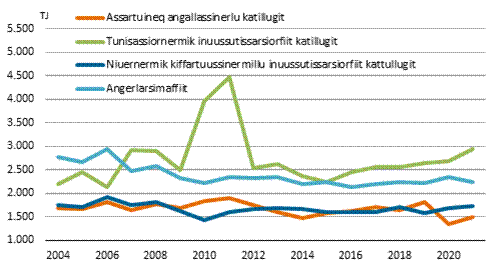 annertusinerulluni. 2021-mi ungasianik kissamik atuineq 439 TJ-uvoq 2004-mi 359