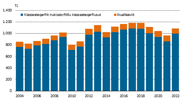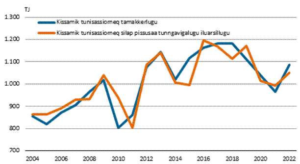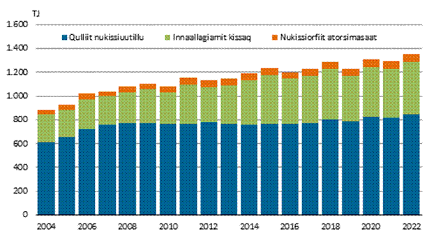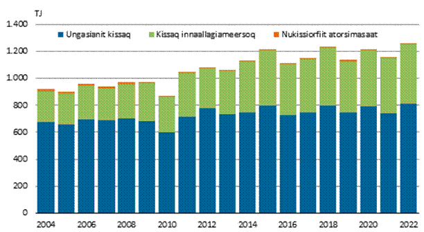 2022-mi ungasianit aamma innaallagiaq atorlugu kissaq tunisaat 1.259 TJ-uvoq, tassunga ilaapput Nukissiorfiit namminneerlutik atugaat. Nukissiorfiit namminneerlutik 6 TJ atorsimavaat, 814 TJ-llu kissaq ungasianeersoq atuisunut ingerlatinneqarsimavoq. Innaallagiaq atorlugu kissaq 439 TJ-usimavoq, 218 TJ kiassarnermut innaallagiatortumut qaminneqarsinnaasumut atorneqarsimasoq 221 TJ kiassarnermut innaallagiatortumut ataavartumut atorneqarsimavoq.