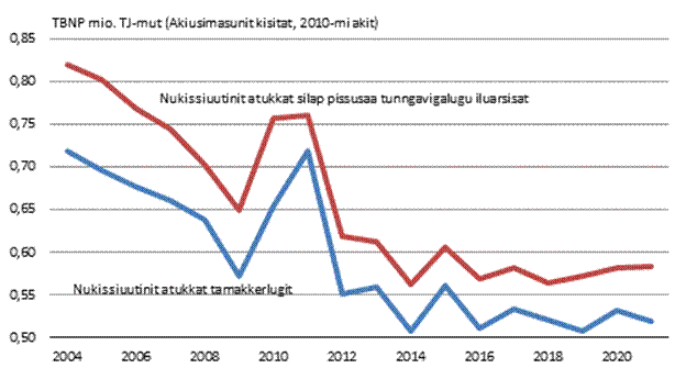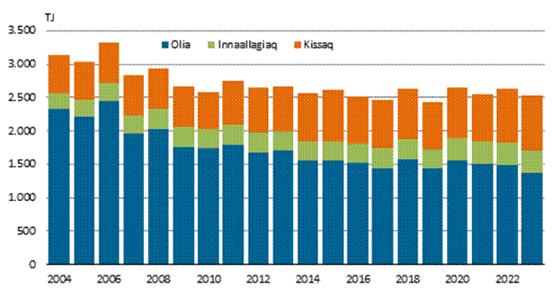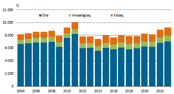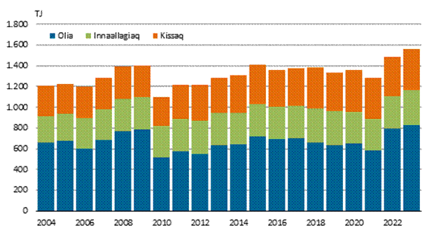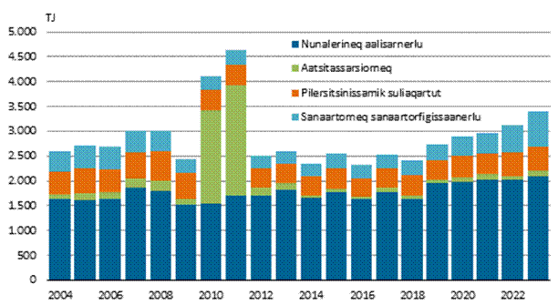 nukissiuutinit atorneqarsimapput 1.560 TJ-t. Ukiup siulianut sanilliullugit 4,7