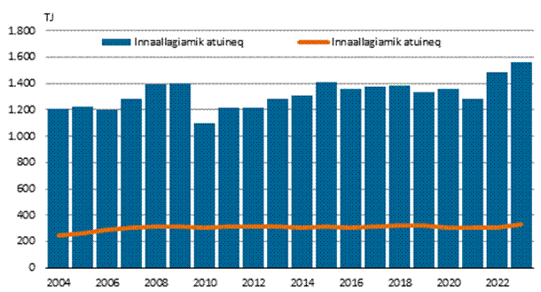 pct.-imik qaffasinneruvoq. 2023-mi innaallagiamik atuineq 332 TJ-uvoq, 2022-mut