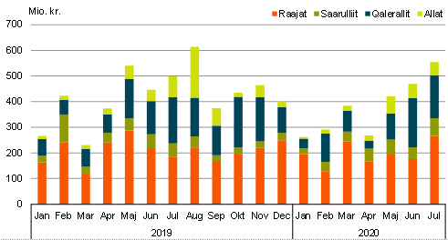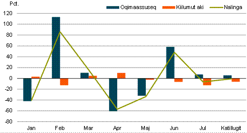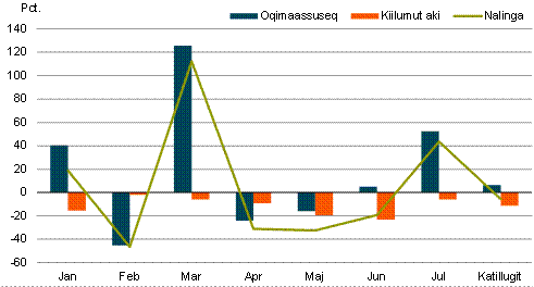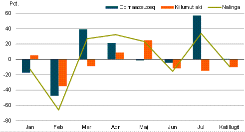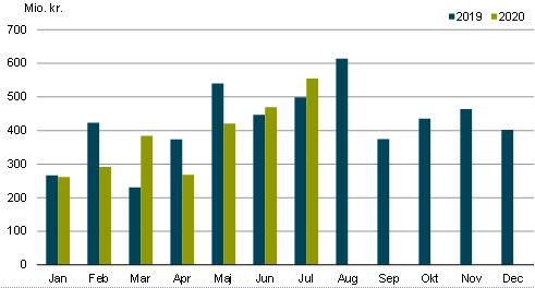 2020-mi januaarimiit juuli ilanngullugu avammut tunisat nalingi katillugit 2.650 mio. kr.-usimapput. Ukiup siuliani piffissamut tassunga sanilliullugit 129 mio. kr.-inik annikinnerupput, annikilleriarnerlu 4,7 pct.-iuvoq.
