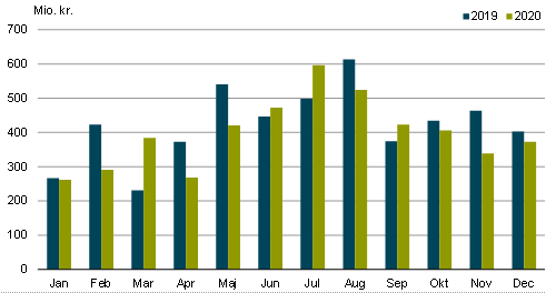 2020-mi avammut tunisat nalingi katillugit 4.761 mio. kr.-usimapput. Ukiup siulianut sanilliullugit 307 mio. kr.-inik annikinnerupput, annikilleriarnerlu katillugu 6,1 pct.-iuvoq.