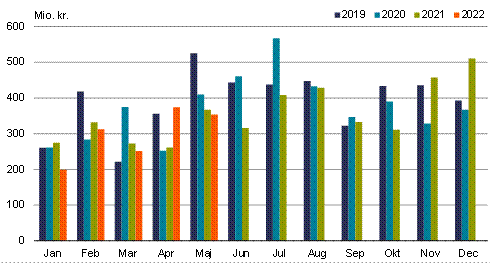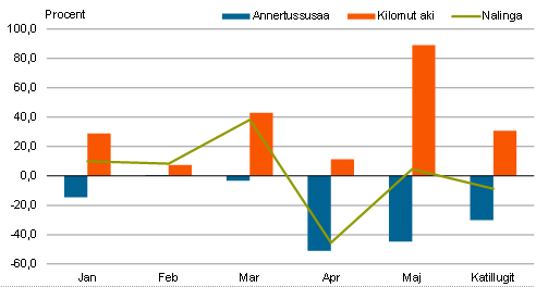 Raajat januar-maj 2022-mi avammut tunisaanerisa nalingat 4,5 pct.-imik annertuseriarsimavoq, tamanna 42 mio. kr.-nik naleqarpoq. Avammut tunisat annertussusaat 0,6 pct.-imik qaffappoq akillu 3,9 pct.-imik qaffallutik.