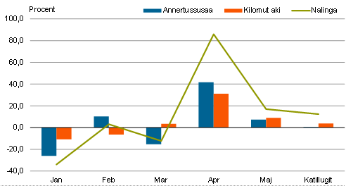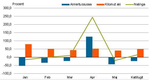 avammut tunineqartut kilomut akia 30,7 pct.-imik qaffappoq.