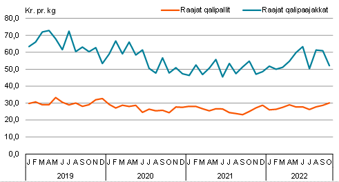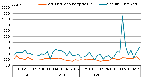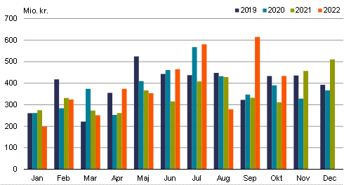 Raajat 2022-mi januaarimiit oktobarimut avammut tunisaanerisa nalingat 17,1 pct.-imik annertuseriarsimavoq, tamanna 311 mio. kr.-nik naleqarpoq. Avammut tunisat annertussusaat 7,9 pct.-imik qaffappoq akillu 13,2 pct.-inik qaffallutik.