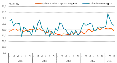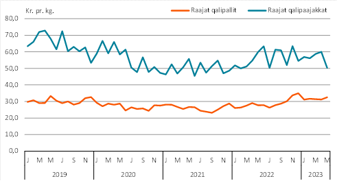 Qalerallit avammut tunineqartut nalingat 33,1 pct.-imik qaffariarsimavoq, tunineqartut annertussusaat 29,9 pct.-imik annertuseriarsimasoq. Taamaalilluni kiilumut akit 2,4 pct.-inik qaffassimapput.