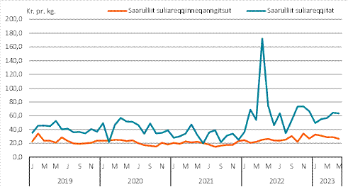 Saarulliit avammut tunineqartut nalingat 17,6 pct.-imik qaffariarpoq, tunineqartut annertussusaat 4,6 pct.-imik annertuseriarsimallutik. Saarulliit avammut tunineqartut kiilumut akia 12,5 pct.-imik qaffariarpoq.